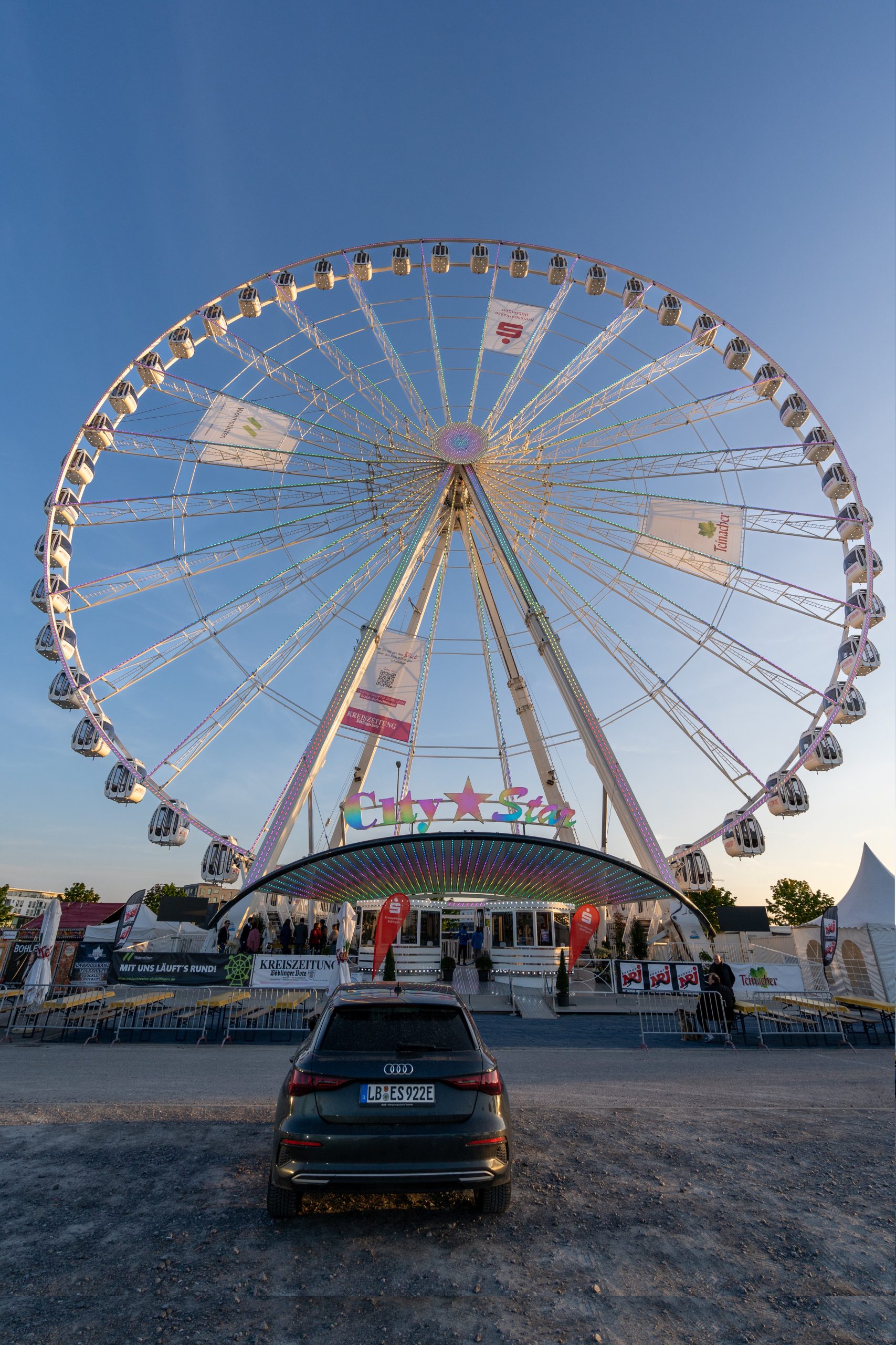 Mit rund 70 Metern stand das größte reisende Riesenrad 2024 bereits zum zweiten Mal in Ludwigsburg. Im Jahr 2023 stand das Riesenrad mit uns bereits in Böblingen auf dem Festplatz Flugfeld. Die 48 geschlossenen und temperierten Gondeln bieten ein komfortables Erlebnis – etwa für die Special Events mit Weinprobe oder Frühstück – können die Besucher ganz bequem an einem Tisch Platz nehmen. Im bequemen Ambiente bietet der Gigant ein Event für die ganze Familie, sechs Personen haben in jeder Gondel Platz. Alle Kabinen sind auch barrierefrei zu erreichen und sind mit einem Audiosystem ausgestattet.
